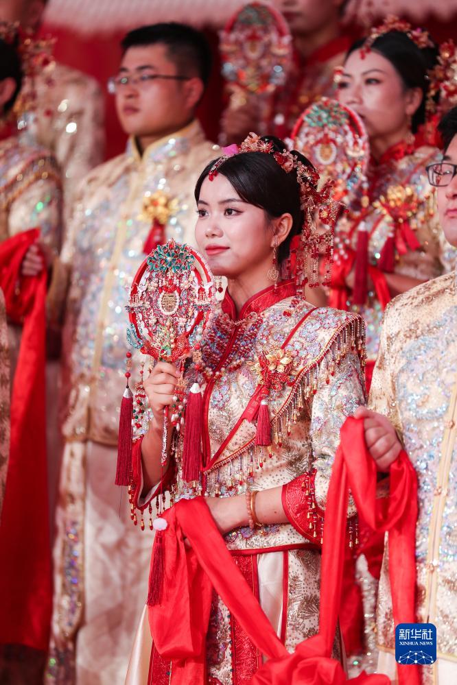 當日,在成達萬(成都經達州至萬州)高速鐵路四川省蓬安縣燕山寨隧道口的施工工地,來自中鐵三局五公司各建設工地的38對新人,身著中國傳統婚禮服飾參加集體婚禮。