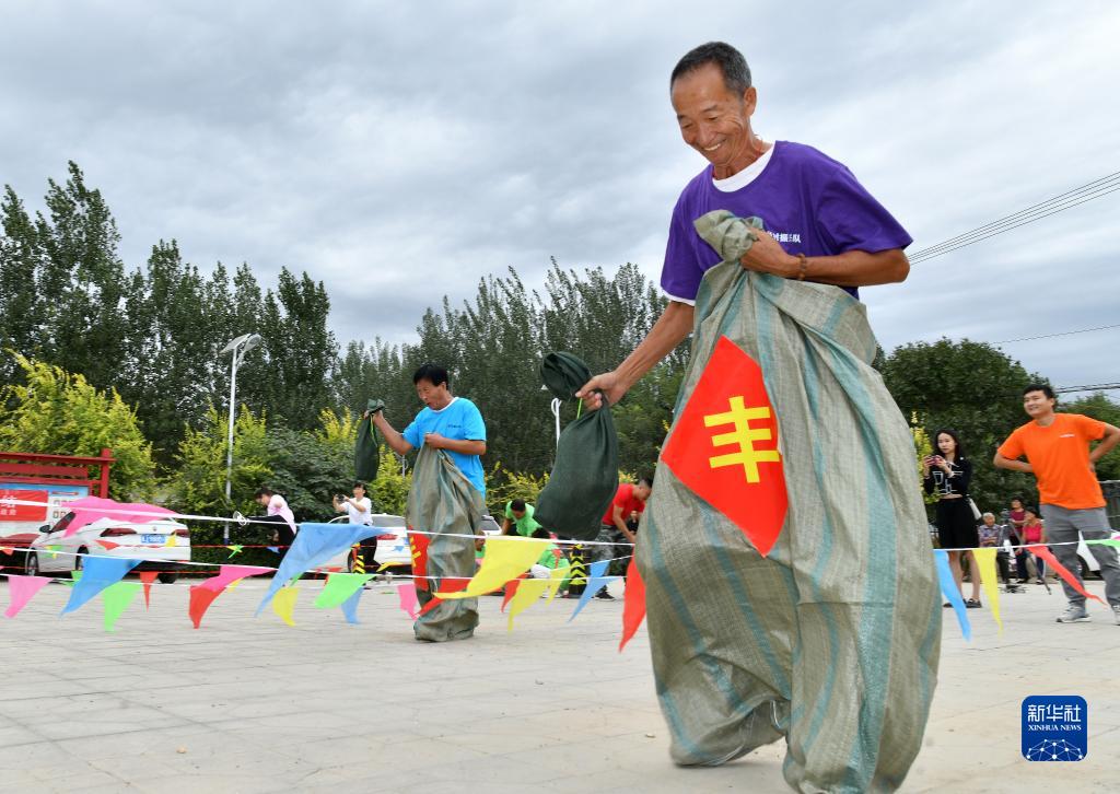 當日,河北省滄州市肅寧縣師素鎮舉辦農民趣味運動會,人們通過參與運花生、貼辣椒、豆類分揀等趣味運動項目,慶祝豐收。