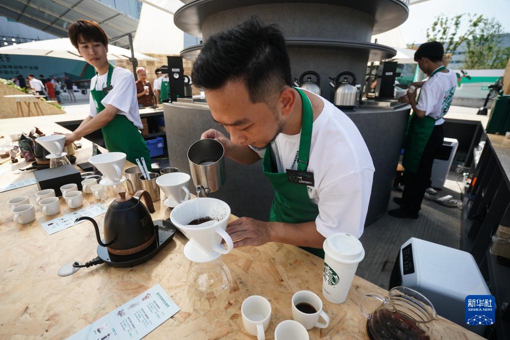 9月19日,在星巴克中國咖啡創新產業園開園儀式現場,工作人員制作咖啡。