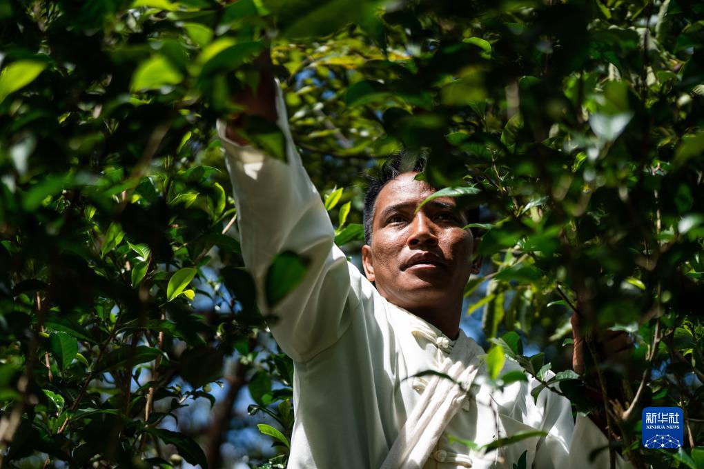 9月19日,景邁山翁基古寨的布朗族茶農(nóng)哎少在古茶林里采摘秋茶。