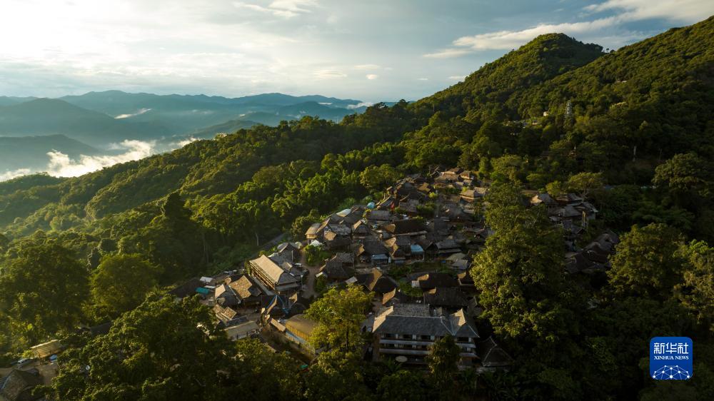 日落時(shí)分的翁基古寨一景(無(wú)人機(jī)照片,9月18日攝)。