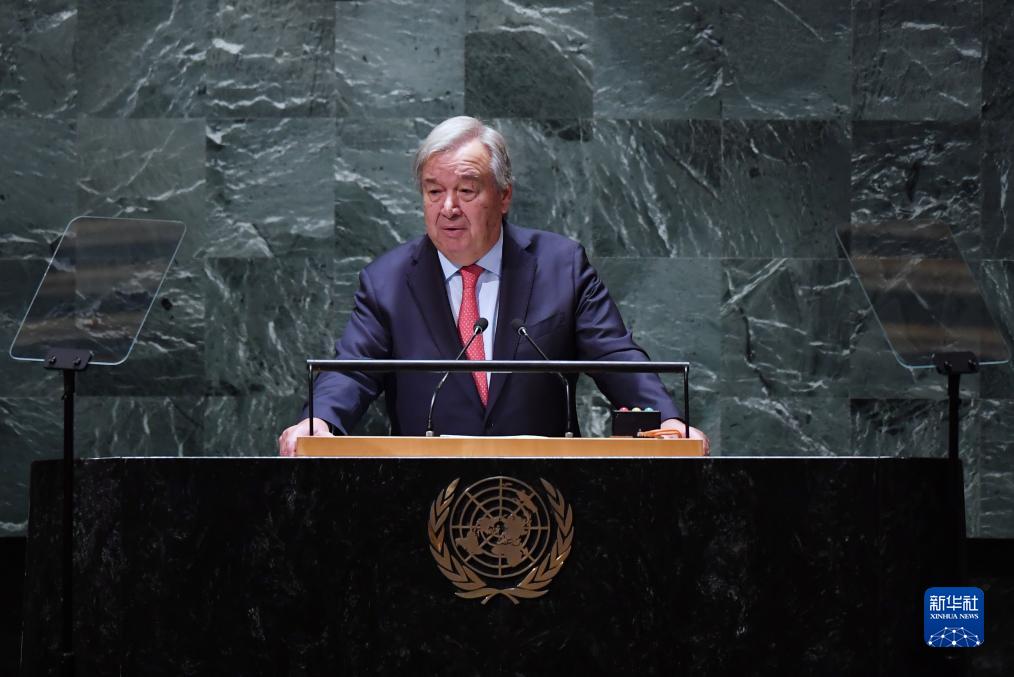 9月19日,在位于紐約的聯(lián)合國(guó)總部,聯(lián)合國(guó)秘書長(zhǎng)古特雷斯在第78屆聯(lián)合國(guó)大會(huì)一般性辯論開幕式上講話。