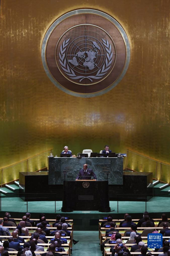 9月19日,在位于紐約的聯合國總部,第78屆聯大主席弗朗西斯在聯合國大會一般性辯論開幕式上講話。