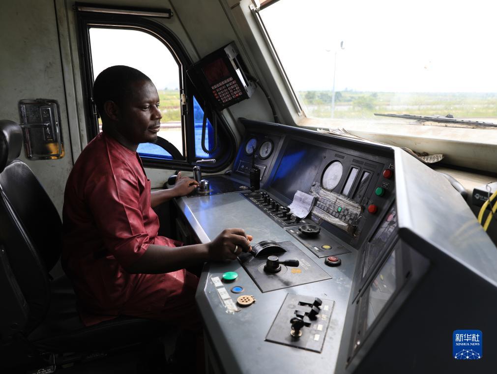 9月18日,在尼日利亞首都阿布賈的阿卡鐵路起點站伊都火車站,司機為發車做準備。