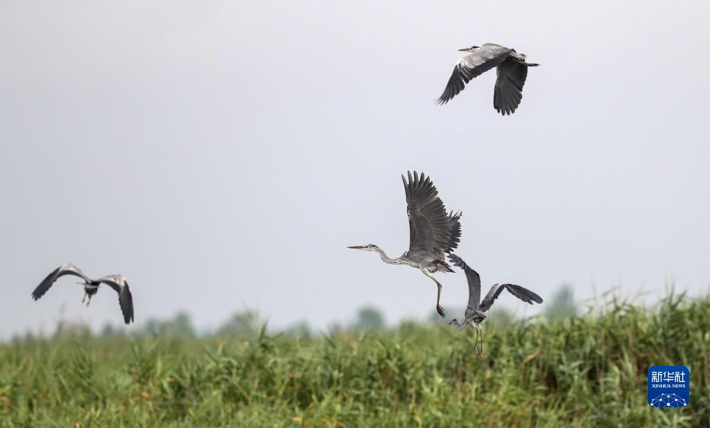鷺鳥飛行在江蘇鹽城濕地珍禽國家級自然保護區(8月22日攝)。