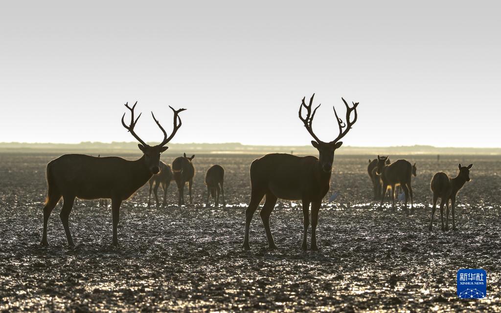 大豐麋鹿國家級自然保護區野外生活的麋鹿種群(8月21日攝)。