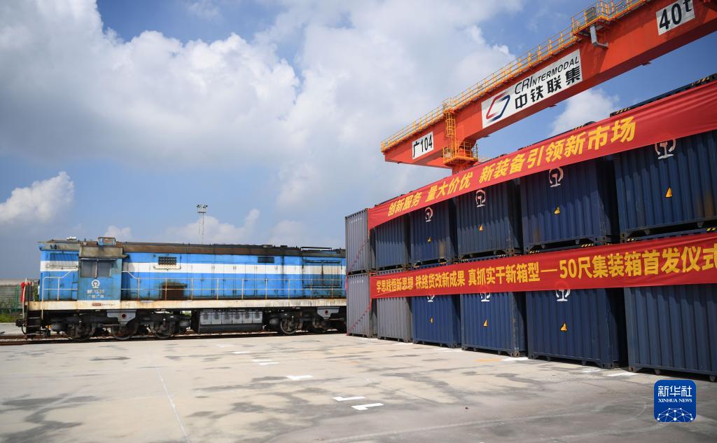 當(dāng)日,搭載50英尺集裝箱的鐵路多聯(lián)快車分別從上海閔行站、廣州國際港站、長沙北站、昆明王家營西站始發(fā),將常態(tài)化投入鐵路貨物運輸。據(jù)了解,50英尺集裝箱由國鐵集團自主研發(fā),箱體總重36噸,載重30.85噸,容積達114.4立方米,比40英尺國際標(biāo)準(zhǔn)箱容積增加50%,是目前國內(nèi)容積最大的集裝箱,滿足鐵路貨物列車裝載和運輸安全要求,并經(jīng)過了上線測試和安全評估。