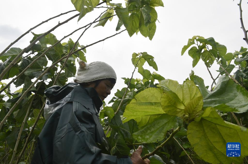 9月21日,在汝州市焦村鎮(zhèn)一處桑樹種植基地,村民在采摘桑葉。
