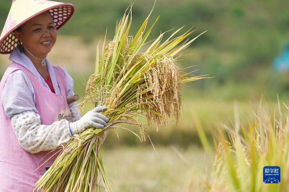 9月19日,云南省文山壯族苗族自治州文山市秉烈鄉(xiāng)村民在搶收稻谷。
