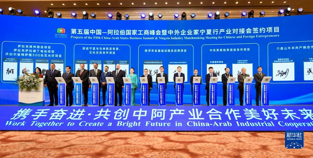 這是第六屆中阿博覽會期間舉行的第五屆中國-阿拉伯國家工商峰會暨中外企業家寧夏行產業對接會簽約儀式(9月21日攝)。