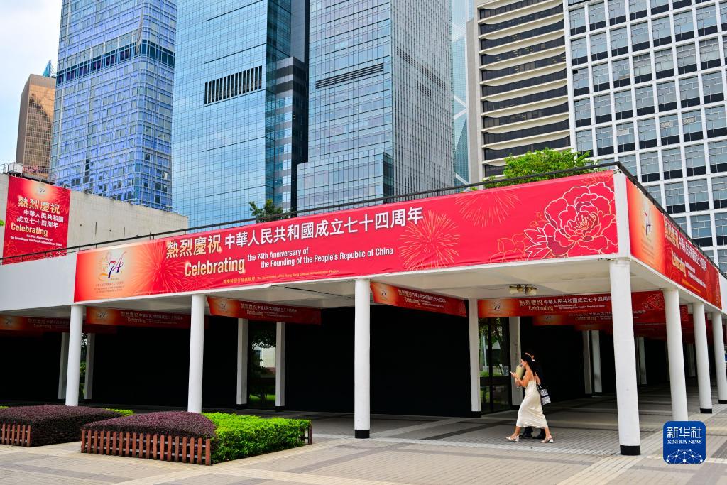 國慶節(jié)將至,香港街頭張貼國慶海報,慶祝中華人民共和國成立74周年。