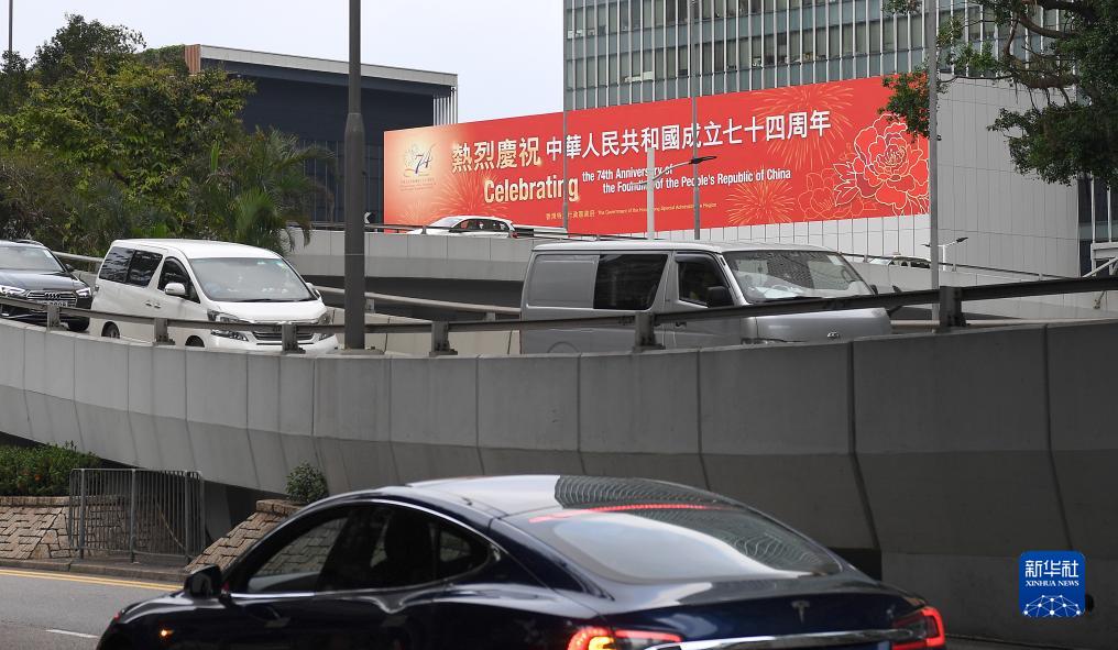 國慶節(jié)將至,香港街頭張貼國慶海報(bào),慶祝中華人民共和國成立74周年。