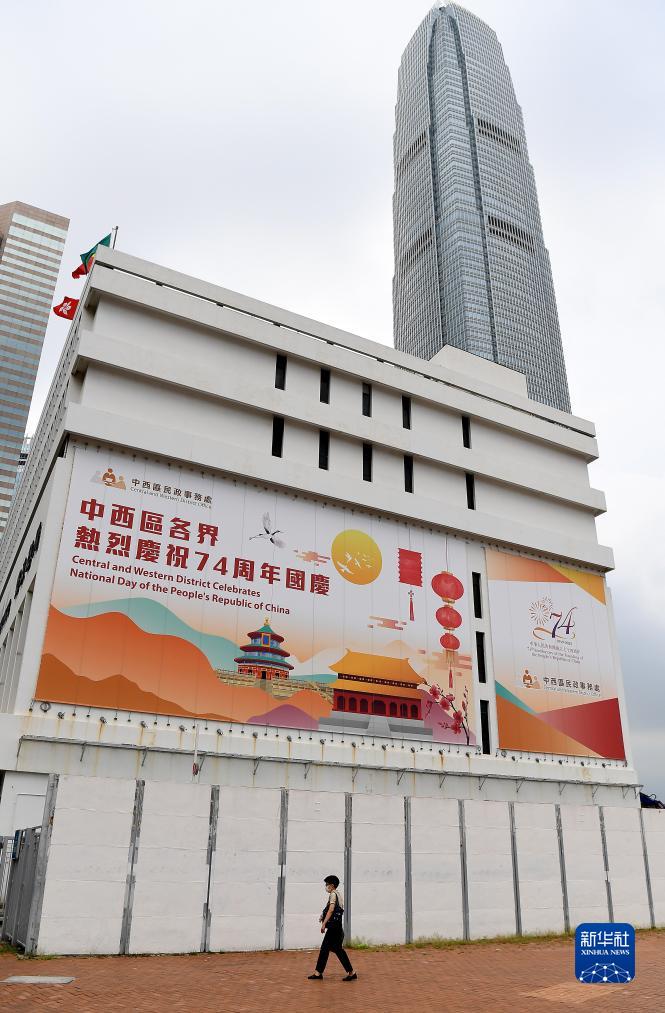 國慶節將至,香港街頭張貼國慶海報,慶祝中華人民共和國成立74周年。