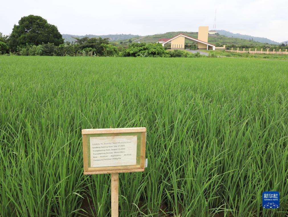 這是9月19日在尼日利亞阿布賈的中國援尼日利亞農業技術示范中心拍攝的GAWAL R1原種水稻田。