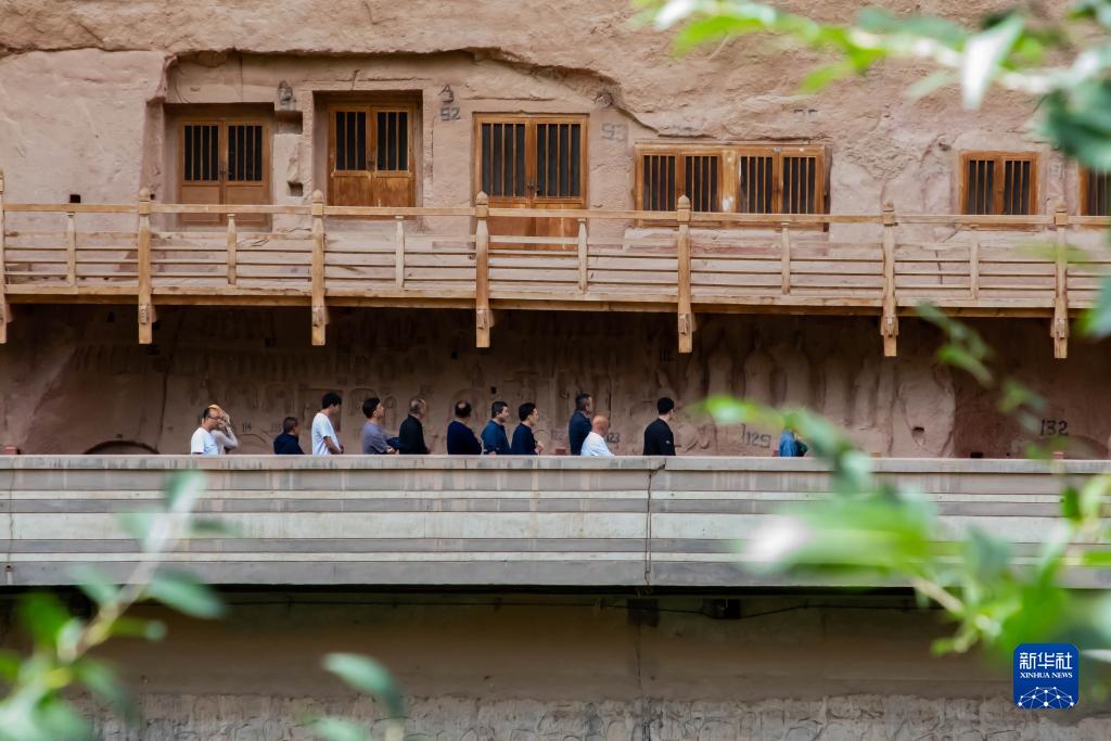 9月21日,游客在炳靈寺石窟參觀。