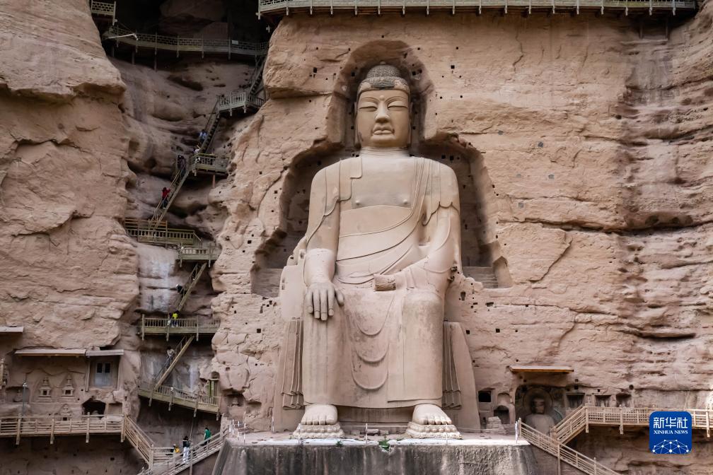 9月21日,游客在炳靈寺石窟參觀。