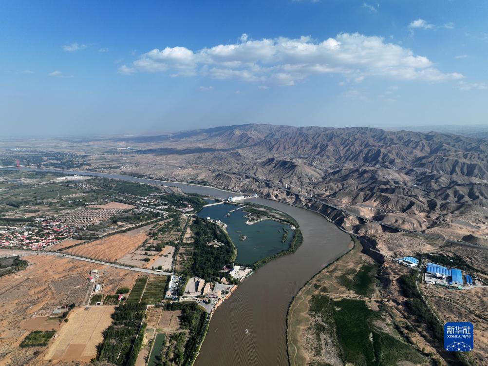 這是流經寧夏中衛市沙坡頭區的黃河(9月6日攝,無人機照片)。