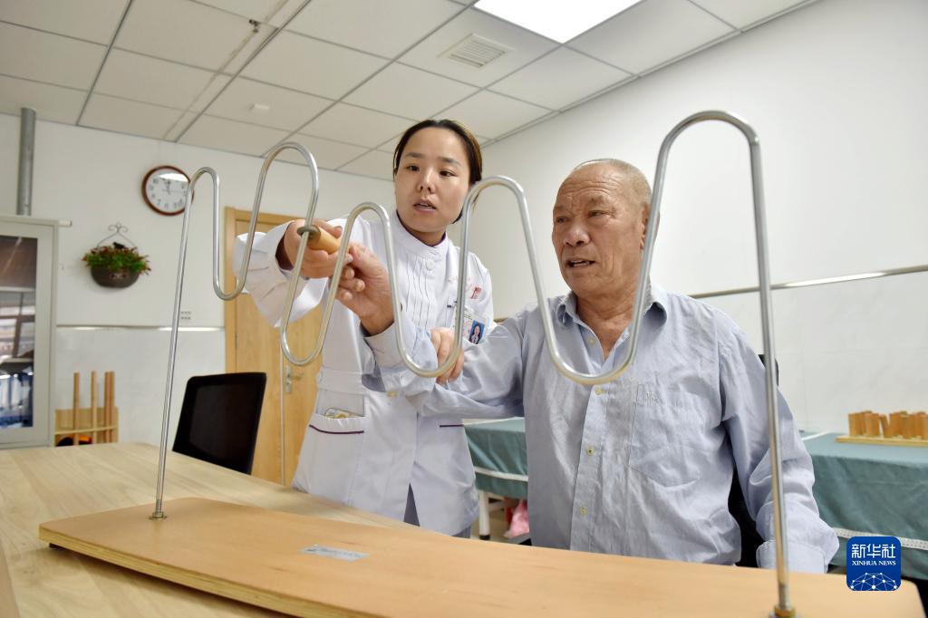 9月26日,邢臺市南和區(qū)人民醫(yī)院醫(yī)養(yǎng)中心工作人員協(xié)助老人進行益智訓練。