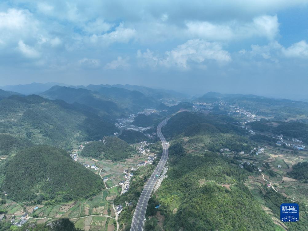 9月28日,在貴州省遵義市境內(nèi)拍攝的蘭海高速重遵擴(kuò)容工程新蒲段(無人機(jī)照片)。