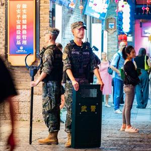 10月1日,武警青海總隊海西支隊官兵在青藏鐵路沿線武裝巡邏。