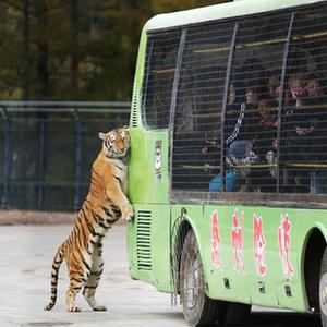 “雙節”期間,天南海北的游客來到坐落于黑龍江省海林市境內的橫道河子東北虎林園,觀虎休閑。