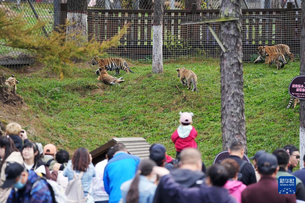 “雙節”期間,天南海北的游客來到坐落于黑龍江省海林市境內的橫道河子東北虎林園,觀虎休閑。