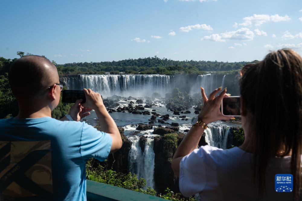10月1日,游客在巴西巴拉那州伊瓜蘇大瀑布景區內參觀。