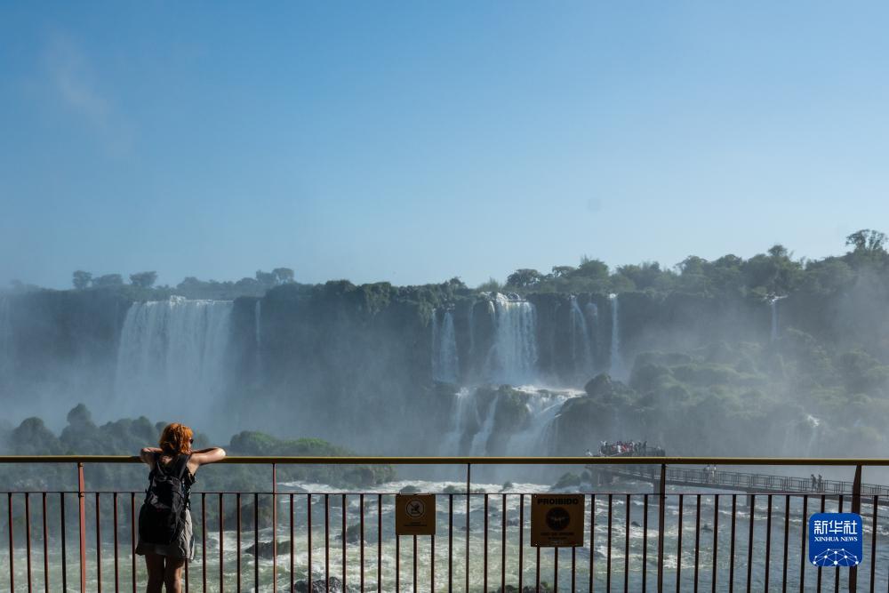 10月1日,游客在巴西巴拉那州伊瓜蘇大瀑布景區內參觀。