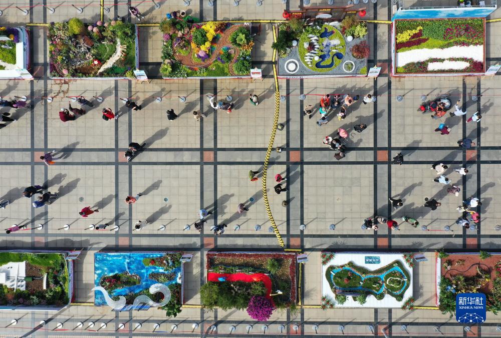 10月2日,市民和游客在石家莊市首屆園林“微景觀”制作大賽成果展上參觀(無人機照片)。