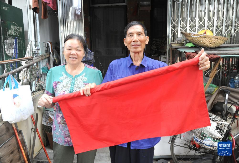 當日,83歲的梁樂老人和愛人又一次在廣西柳州市自己家門口升起了國旗。有著50余年黨齡的梁樂從1994年至今,堅持每天在家門口升國旗。國旗換了20多面、旗桿斷了十幾根,升旗、降旗的動作重復了29年。今年的國慶節,受柳州市柳南區河西街道辦事處宏都社區邀請,梁樂為舉行升旗儀式的吉祥苑小區升旗。數十名居民一起見證了這場“家門口”的升旗儀式。