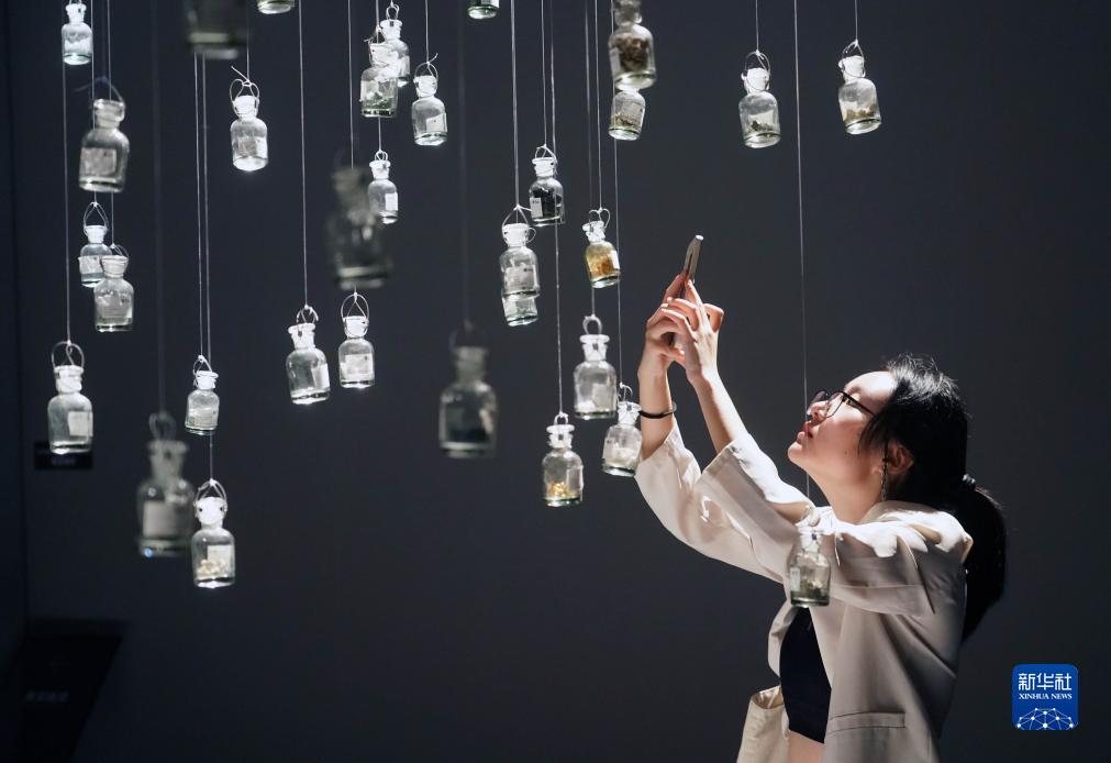 10月2日,參觀者在北京時代美術館的《星河角落:步天歌》科學藝術展上拍照。