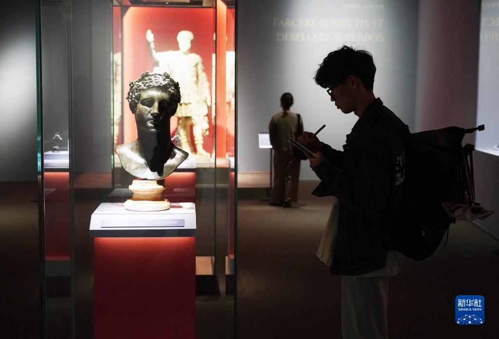 10月2日,一名參觀者在北京中華世紀壇的“古羅馬文明之光——意大利那不勒斯國家考古博物館珍藏展”上觀看展品。