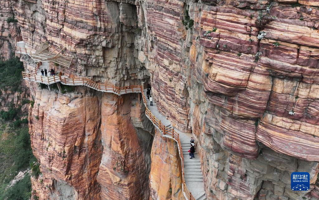 10月2日,游客在河北省武安市東太行景區(qū)觀光(無人機照片)。