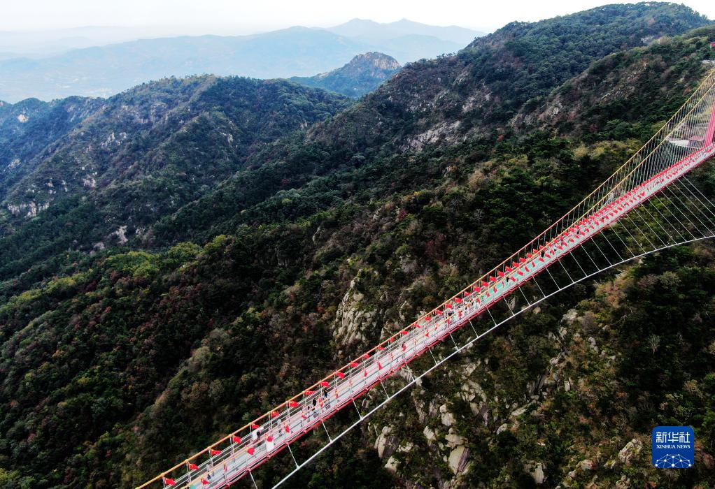 10月2日,游客在山東省臨沂市沂蒙山銀座天蒙旅游區游玩(無人機照片)。