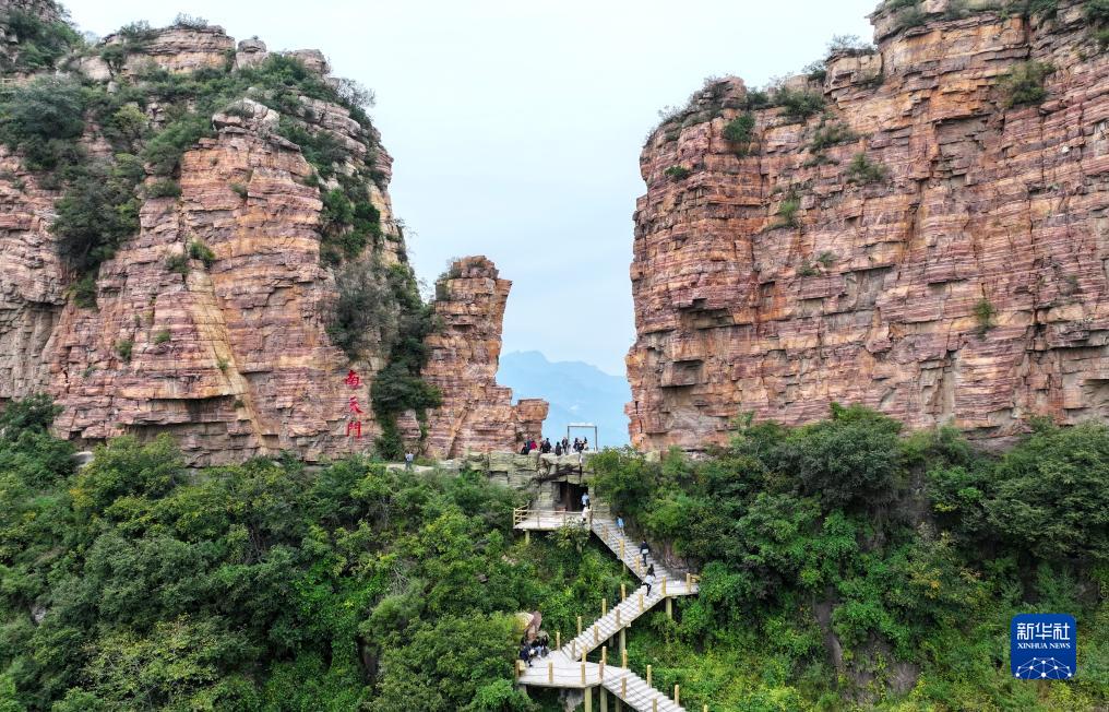 10月2日,游客在河北省武安市東太行景區觀光(無人機照片)。