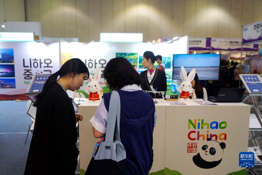 10月5日,人們?cè)陧n國(guó)釜山國(guó)際旅游展中國(guó)展位參觀。