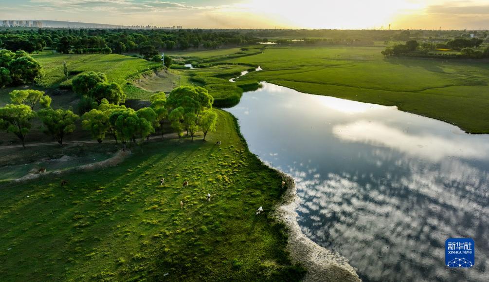 這是2023年8月18日拍攝的陜西省榆林市靖邊縣蘆河河面(無人機照片)。近年來,當地政府不斷加大對蘆河治理和水環境保護力度,推行河長履職問責制,全面提升蘆河兩岸生態園林工程,以實現生態、宜居、人文三個層次目標。
