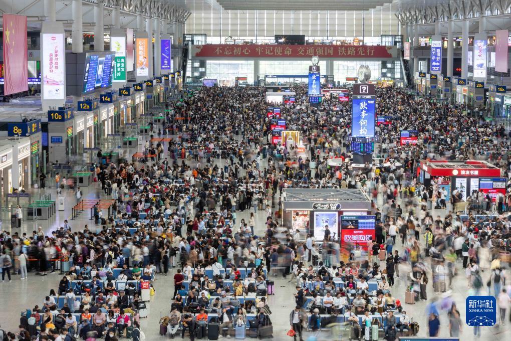 10月6日,上海虹橋火車站候車大廳里人頭攢動。