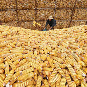 10月6日,山東省棗莊市山亭區(qū)城頭鎮(zhèn)荒溝村農(nóng)民在整理收獲的玉米。