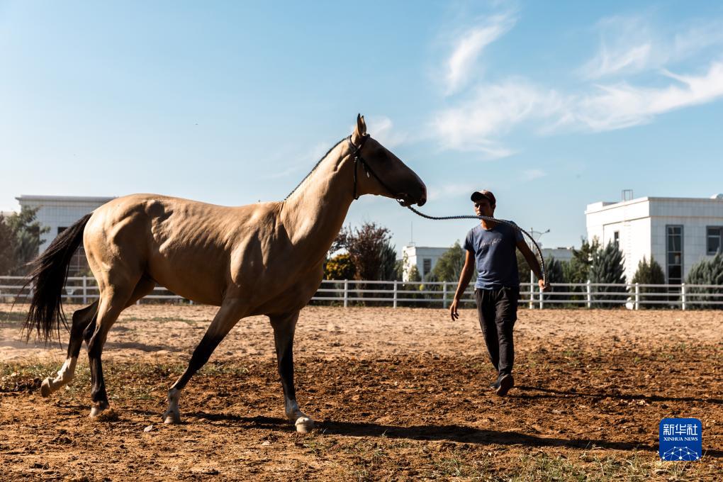 汗血馬學名阿哈爾捷金馬,原產于土庫曼斯坦科佩特山脈和卡拉庫姆沙漠間的阿哈爾綠洲。阿哈爾捷金馬是世界最古老的馬種之一,被土庫曼人稱為“天馬”,是土庫曼斯坦的國家象征,其形象被繪制在土庫曼斯坦國徽中央。新華社記者 李木子 攝