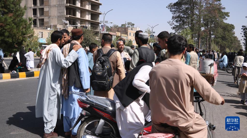 10月7日,阿富汗西部赫拉特省赫拉特市居民在街道上躲避地震。