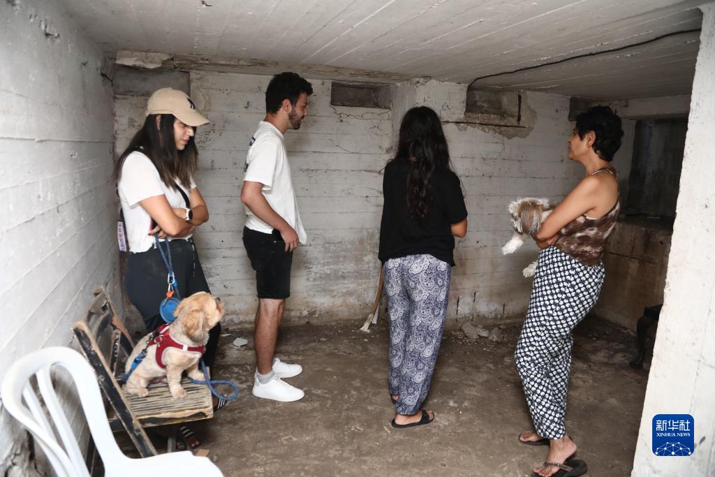 10月7日,防空警報響起后民眾在以色列特拉維夫一處建筑內躲避。