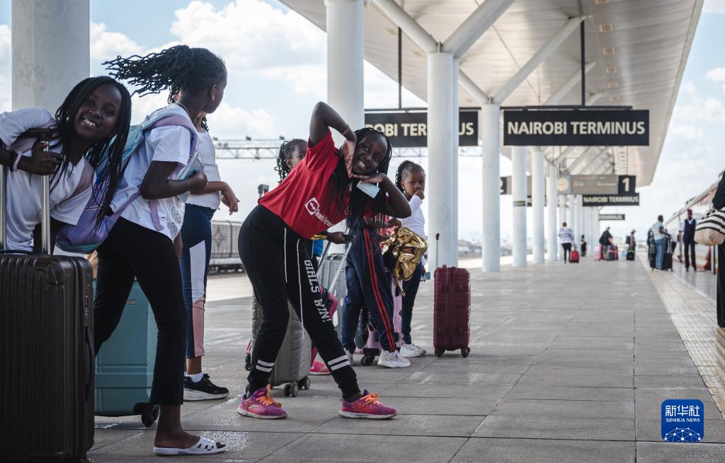 10月6日,兒童在肯尼亞內羅畢的蒙內鐵路內羅畢站內等待登車。