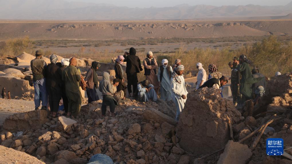 10月7日,人們在阿富汗赫拉特省進行震后救援工作。