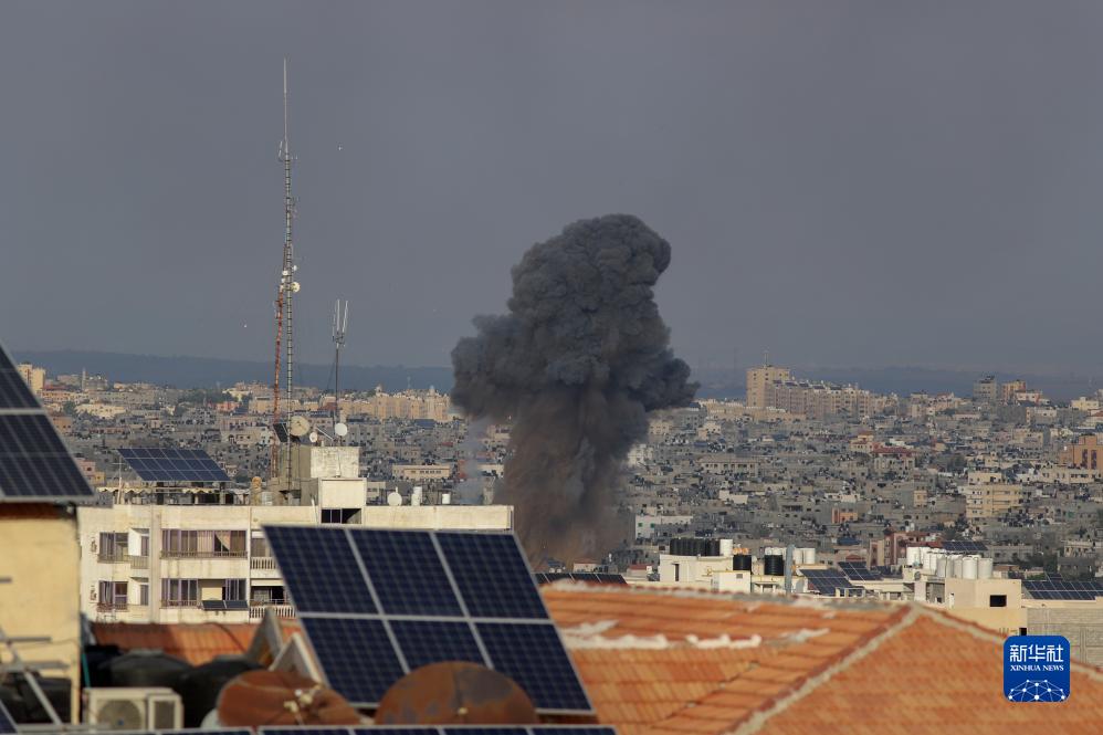 這是10月7日在加沙城拍攝的以色列軍隊空襲地面建筑造成的濃煙。