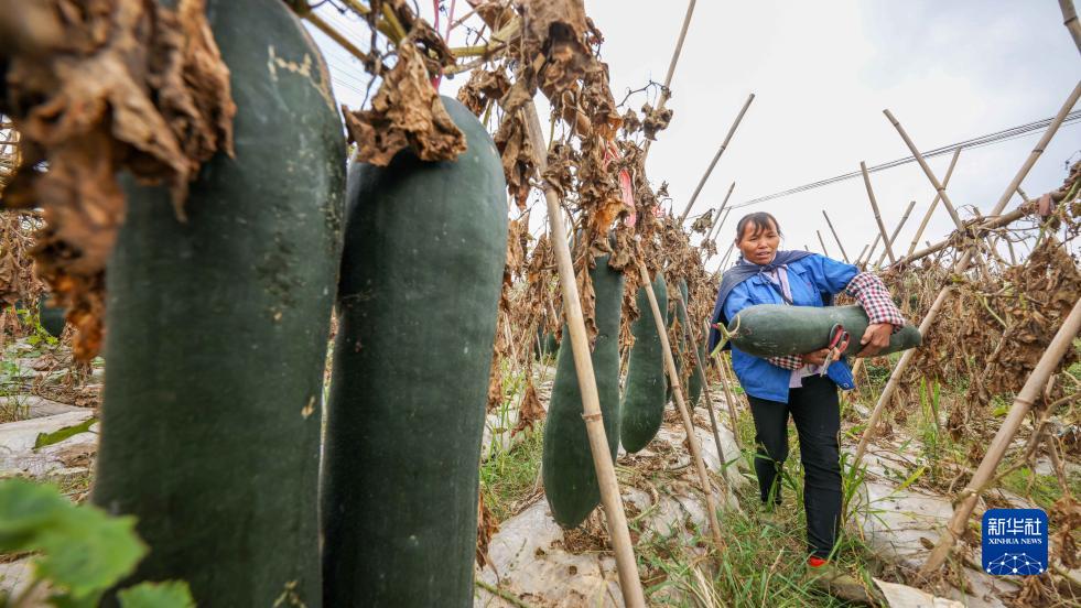 10月8日,農民在玉屏侗族自治縣田坪鎮長嶺村采收冬瓜。