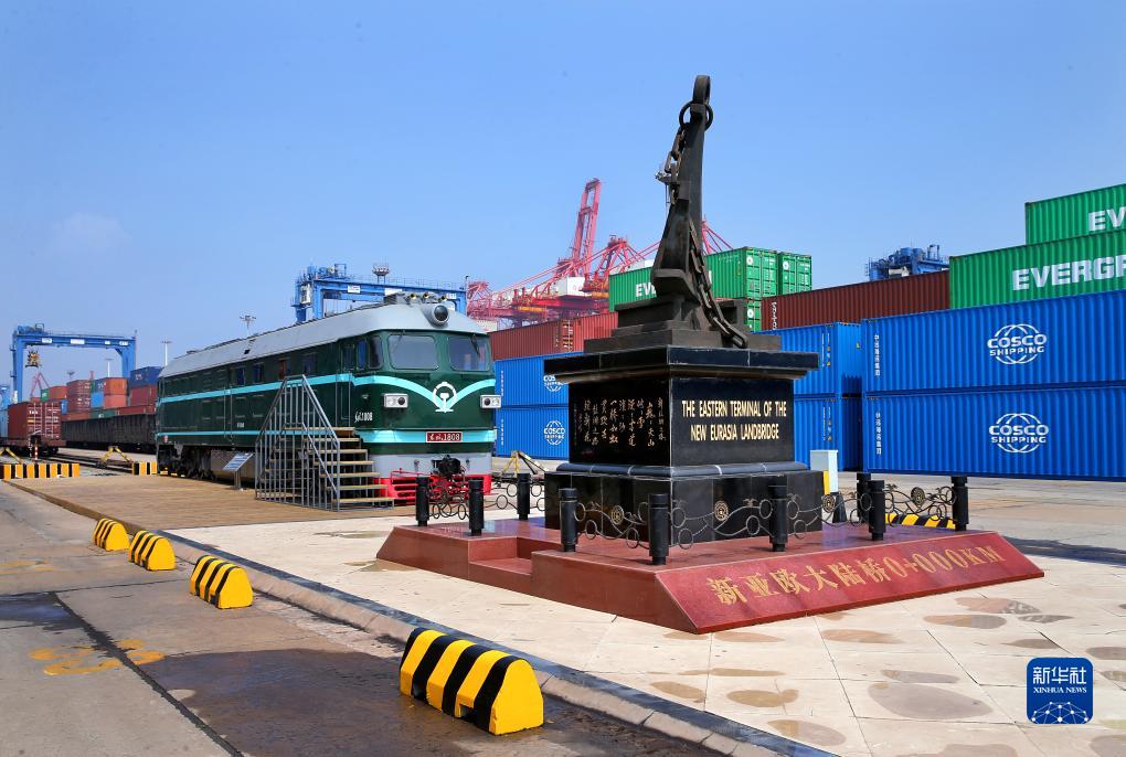這是2017年6月7日拍攝的江蘇連云港港新亞歐大陸橋起點標志。