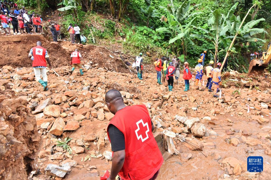 10月9日,人們在喀麥隆雅溫得山體滑坡災(zāi)害現(xiàn)場開展搜救工作。