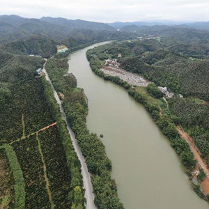 廣東廣寧縣綏江兩岸的竹林(無人機照片,10月9日攝)。