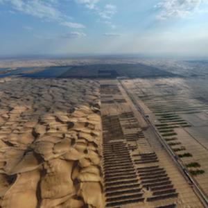 位于內蒙古鄂爾多斯市達拉特旗的庫布其沙漠鄂爾多斯中北部新能源基地項目于2022年底開工建設。項目全部建成后,每年可向京津冀地區送電約400億千瓦時。